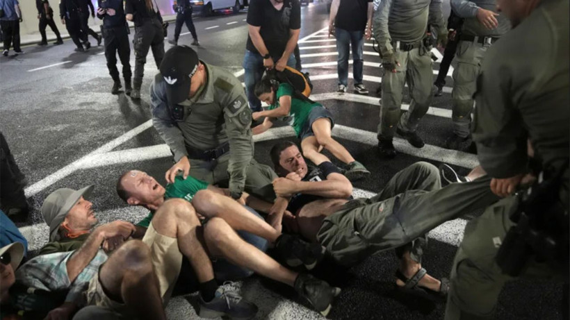 Polis, başkent Tel Aviv’e giden 16. Otoyolu saatlerce kapatan bir grubu dağıtmak için tazyikli su kullandı. Öte yandan, 4. Karayolu’nda tekerlek yakan bir grup için de polis ekipleri yollandı.