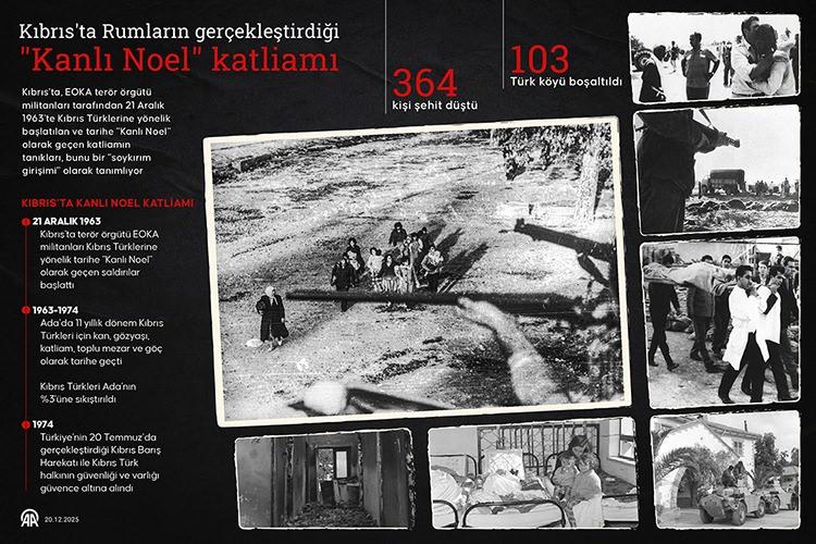 Kıbrıs’ta terör örgütü EOKA militanlarınca 21 Aralık 1963’te Kıbrıs Türklerine yönelik başlatılan ve tarihe “Kanlı Noel” olarak geçen katliamın 62. yılı.