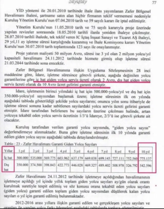 Not: Sözleşmeye göre garanti ödemeleri giden yolcu sayısı üzerinden yapılmaktadır.”